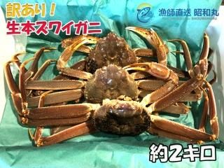 本ズワイガニ2〜6尾入りで商品(蟹)の総重量が約2キロ入。